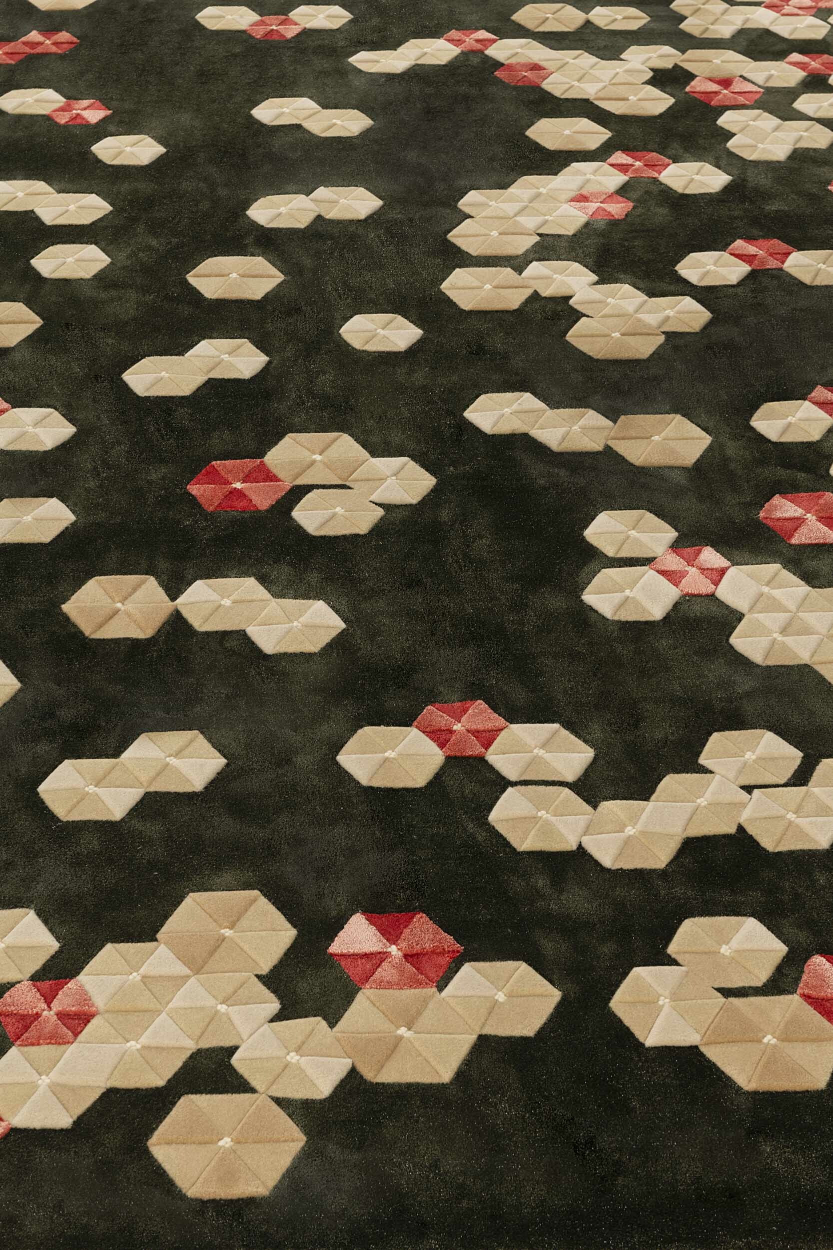 The ancient art of origami echoed in fashion designer Fang Yang’s exquisite garments have been translated into artisanal floor coverings for the Atelier by FANG collection. All designs in this collection are expertly tufted by Tai Ping artisans.