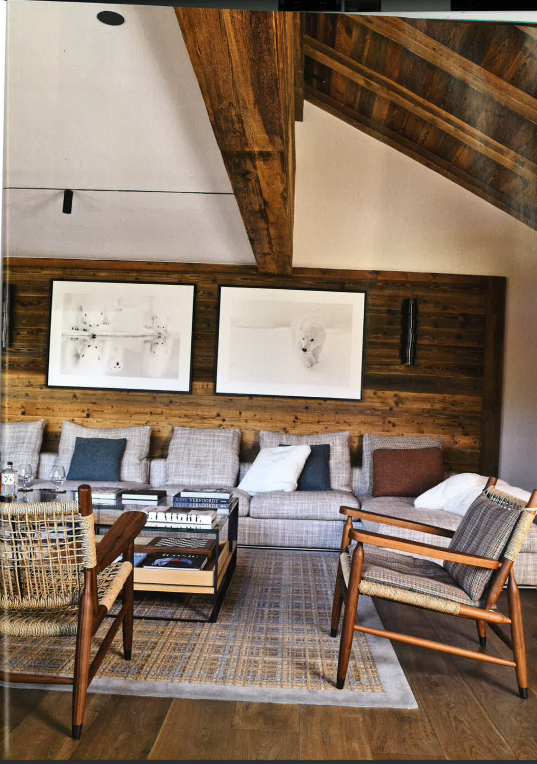French magazine Domodeco presents in their speical about luxury and moutains the Flagstone design from the André Fu Collection by Tai Ping. Surrounded mainly by wood, the carpet unfurls its inherent chromatic framework, in a 1950s/1960s blue tone.