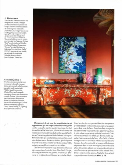 ELLE Décoration France features a project by French architect Nathalie Rives, who has specified Tai Ping to her residential clients for their Ile-Saint-Louis Paris apartment, inspired by the owners' garden. The rug, Ephemera I from Vestige Collection is hand-tufted with the finest wool and silk.