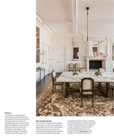 ELLE Decoration France showcases an exceptional project by Gilles & Boissier, featuring a custom "Fin de Règne" rug, a design created in collaboration with Tai Ping a few years ago. This unique design seamlessly blends timeless elegance with contemporary sophistication, enhancing the refined atmosphere of the space.