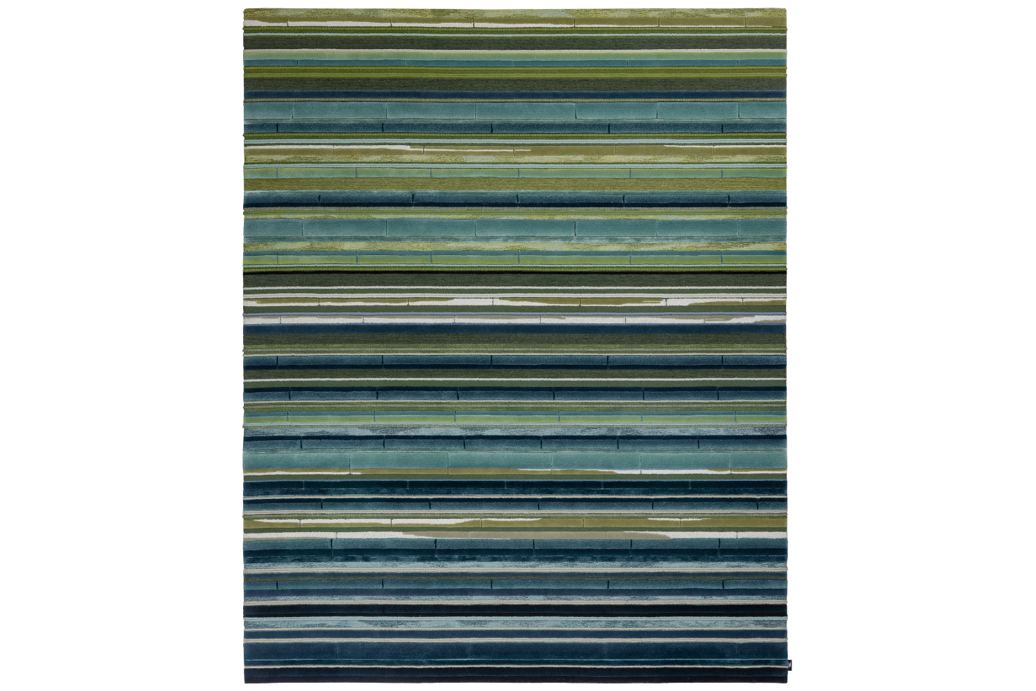 A poetic and elegant homage to bamboo, Emerald Hush channels the fresh, resilient charm of a swaying forest. The design features pronounced horizontal bands and distinct linear geometry that reflect the plant's segmented structure and natural grace. The visual contrast and bold lines elevate this element of nature into a modern, refined statement.
